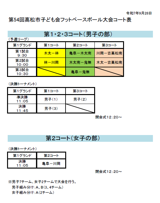 〇日時 令和7年9月28日(日)午前9時~開会式 9時30分~試合開始 午後1時30分 終了予定