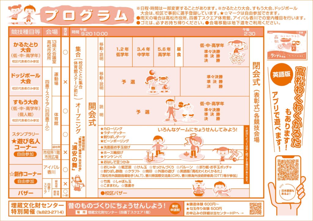〇会場:高松市役所・四番丁スクエア運動場・四番丁スクエア体育館・アイパル香川